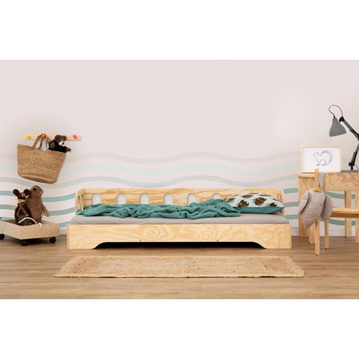 The Ebbe Wooden Kids Bed is a delightful blend of functionality and aesthetics, designed to bring a warm, natural charm to any child's bedroom. Meticulously fashioned from sustainable pine plywood, this bed stands out for its eco-friendly construction and exceptional durability, ensuring a long-lasting and sturdy sleeping space.