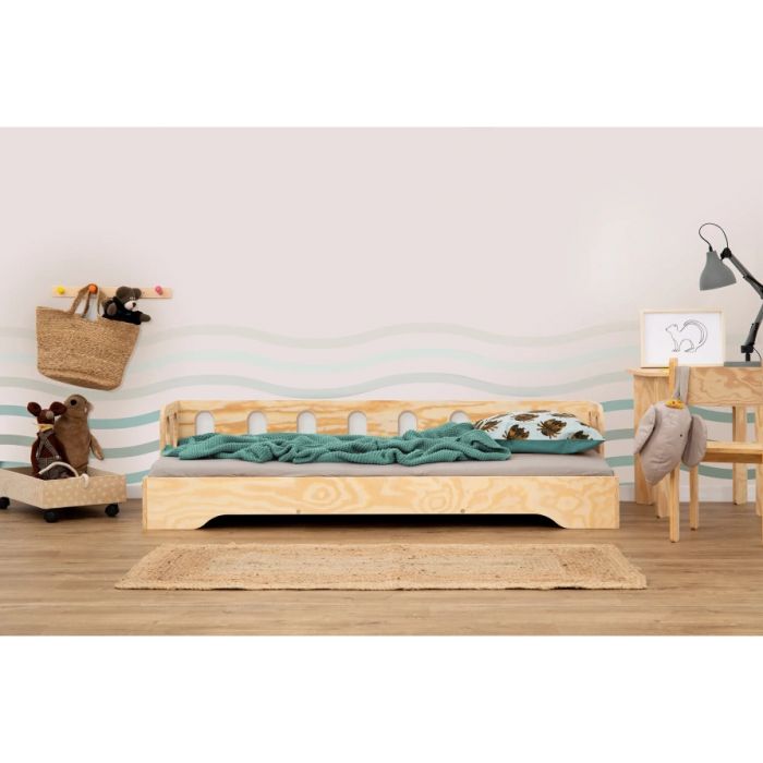 A delightful blend of functionality and aesthetics designed to bring joy to your child's bedroom. Crafted with precision from high-quality plywood, this bed exudes the warmth and natural charm of Scandinavian design. Its unique feature lies in its innovative, eco-friendly construction, as the bed is meticulously fashioned from sustainable plywood, ensuring durability and longevity while being gentle on the environment. The plywood's distinctive grain patterns and smooth finish not only provide a visually appealing look but also enhance the bed's sturdiness. The bed's thoughtful design prioritizes safety and comfort, with rounded edges and a low-profile frame that makes it easy for young ones to climb in and out. It's the perfect canvas for your child's creativity, allowing them to personalize their sleeping space with colorful linens, plush toys, or decorative accents to create a cozy and inviting atmosphere. This Scandinavian Ebbe Wooden Kids Bed is a place where dreams are born and cherished memories are made, offering your child a serene and stylish retreat for years to come. Upgrade your child's bedroom with this unique Scandinavian bed, where quality craftsmanship meets timeless design.