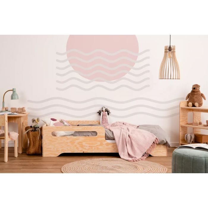 Crafted with both functionality and aesthetics in mind, Ebbe 3 bed combines the timeless charm of Scandinavian design with essential safety features, making it an ideal choice for your child's peaceful slumber. Our Scandinavian Wooden Floor Bed boasts a lovely minimalist design, characterized by clean lines, natural wood tones, and a low-profile silhouette. Crafted from high-quality, pine plywood, the bed exudes warmth and durability. The choice of wood not only adds a touch of natural beauty to the room but also ensures longevity, making it an eco-friendly choice. The primary feature of this bed is its integrated safety barriers, designed to offer protection and peace of mind for both parents and children. The safety barriers are thoughtfully positioned along the sides of the bed, preventing accidental falls during sleep while allowing for easy access in and out of bed. These barriers are sturdy, securely attached, and built to withstand the playful antics of active children. The bed comes flat packed together with the manual for easy assembly and takes minimum time and effort to complete the process.