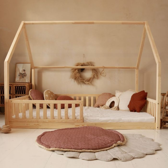 The BIANCO house bed is made of glue-laminated pine wood. Its smooth surface, coupled with rounded shapes, ensures a comfortable and safe sleeping environment. Opt for the natural wood version for a raw, untreated option that exudes rustic charm and character.