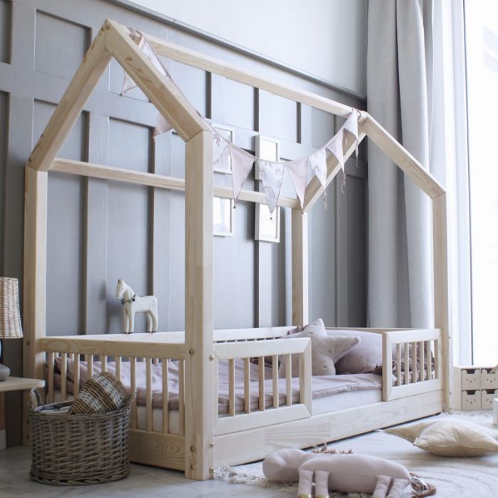 Our Pioli House Bed is a perfect match for every kid’s room. A child's wooden bed is not just a place to rest; it's a canvas for expressing their personality and preferences. Crafted from laminated pine, its sleek contours and rounded edges are stylish and hug the little ones safely. Opt for the natural wood version for a raw, untreated option that exudes rustic charm and character.