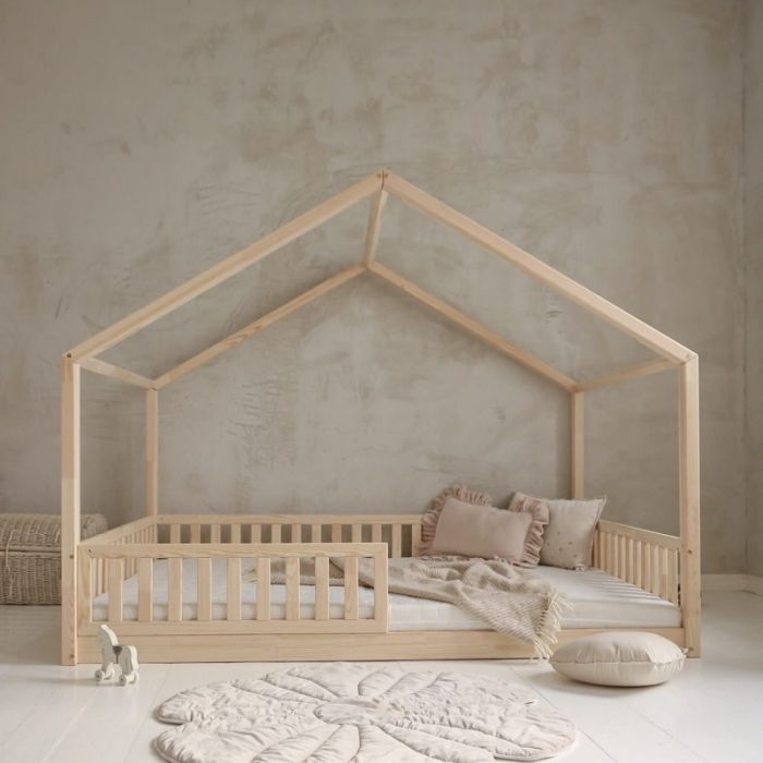 A child's wooden bed is not just a place to rest; it's a canvas for expressing their personality and preferences. Selecting a beautiful, appealing, and suitable bed for your child is crucial; our house perfectly matches every kid’s room. Crafted from laminated pine, its sleek contours and rounded edges are stylish and hug the little ones safely. The natural wood color creates a cozy abode where every night is a new adventure!