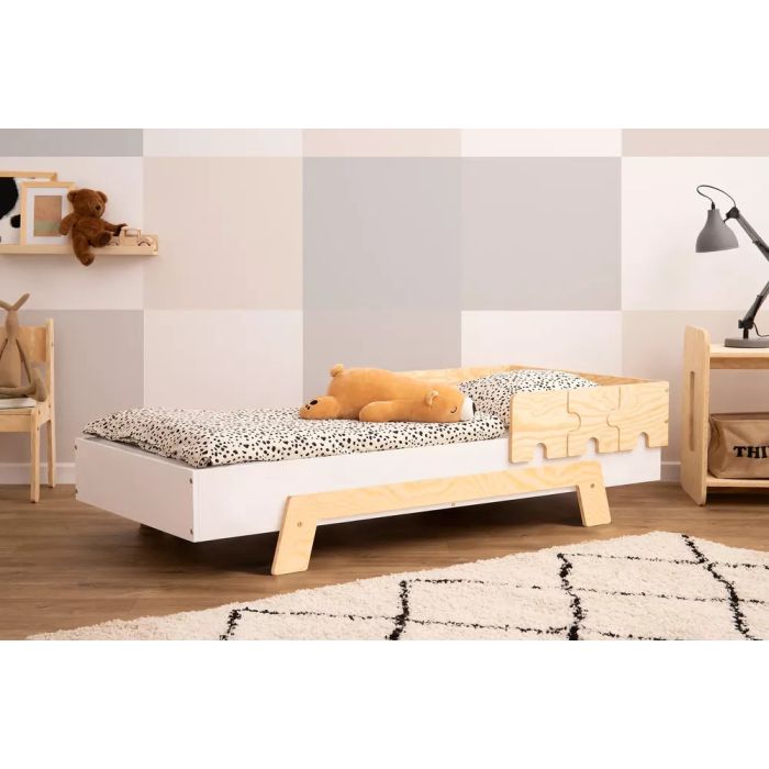 If you are looking for a unique centerpiece for your child’s bedroom, the Puzzle bed offers the perfect combination of creative design and functional versatility. With its distinctive puzzle-shaped barriers and warm, earthy wood tones, this bed creates a cheerful yet calming ambiance for a restful night's sleep.