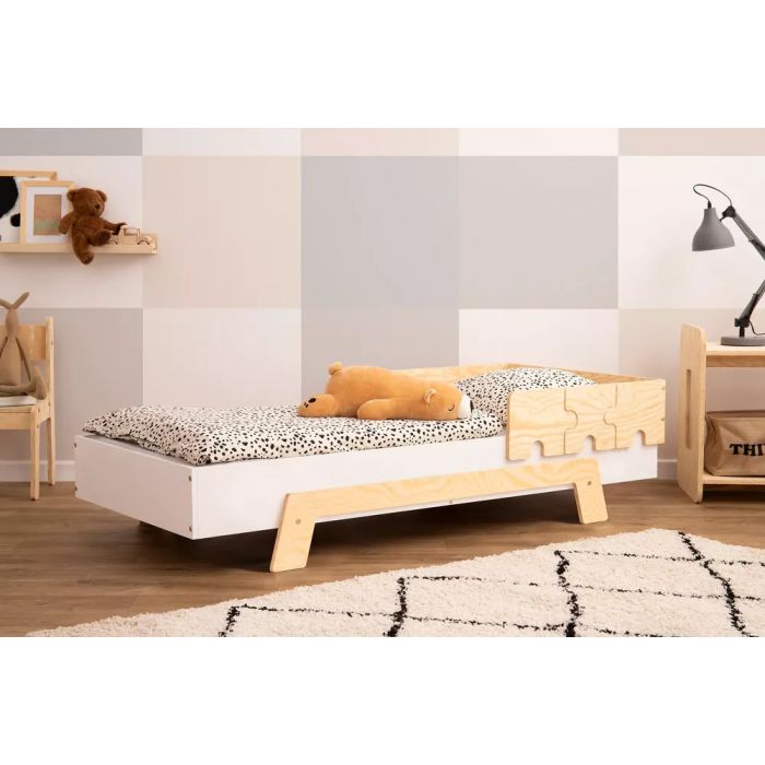 If you are looking for something truly extraordinary for your child’s room, then our Scandinavian design Puzzle bed will be the perfect solution for you and your family. This lovely little kid's bed is designed with versatility in mind. The natural grain patterns and warm, earthy tones of the wood create a soothing ambiance, promoting a sense of calm and comfort for your child, while its puzzle shaped barriers add some more visual interest and cheerful mood. It accommodates a standard-sized mattress, allowing for a seamless transition from crib to bed. The low-profile frame ensures easy access for young children and the simple, timeless design suits a range of bedding styles and decor. The bed is crafted of finest pine plywood guaranteeing sturdiness and durability. Assembly is hassle-free, thanks to the intelligently designed components and clear instructions provided. You can have this bed set up and ready for your child's enjoyment in no time.